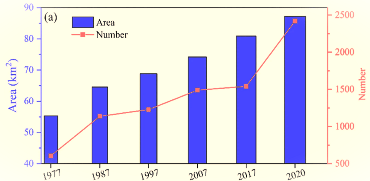 The number of glacial lakes and areas increased in Nepal between 1977 and 2020. Source: REC